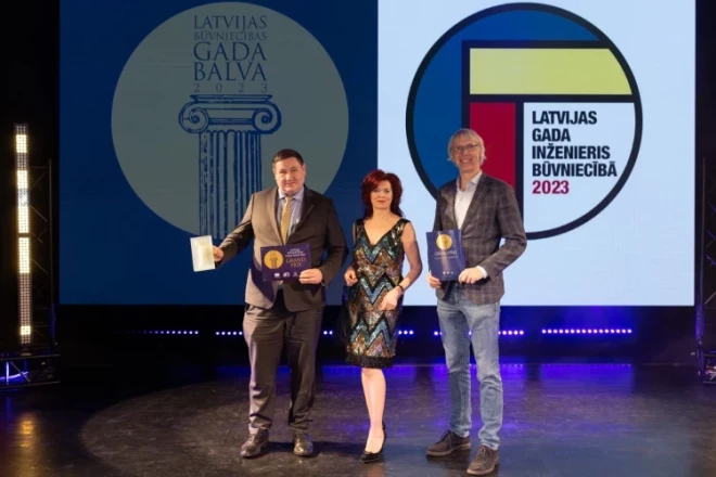 Объявление лауреатов конкурса Латвийская награда года в строительстве 2023, организуемого обществом Building Design and Construction Council (BDCC, www.buvniekupadome.lv), Гунита Янсоне, Агрита Лусе, состоялось 7 марта 2024 года во дворце культуры Ziemeļblāzma. Из 145 полученных заявок 3 объекта были выдвинуты на получение Grand Prix и по 10 номинациям были определены обладатели первых трех мест.