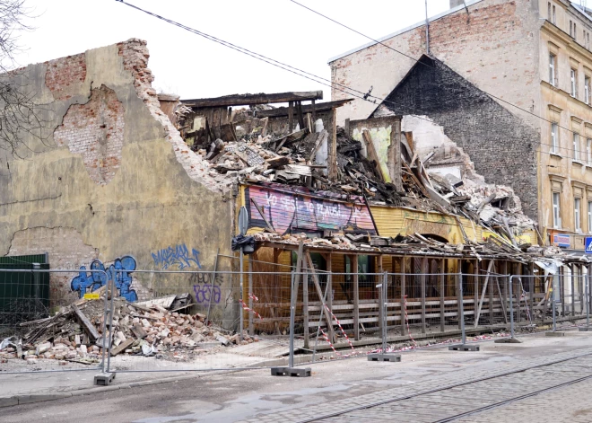 В понедельник вечером в Риге на улице Петерсалас, 6 обрушилось здание, в результате остановилось движение трамваев 5-го маршрута, сообщило муниципальное транспортное предприятие Rīgas satiksme в социальных сетях.