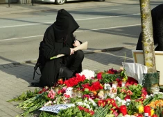В знак поддержки близких погибших в результате трагических событий в концертном зале "Крокус Сити Холл" жители Латвии принесли цветы и ...