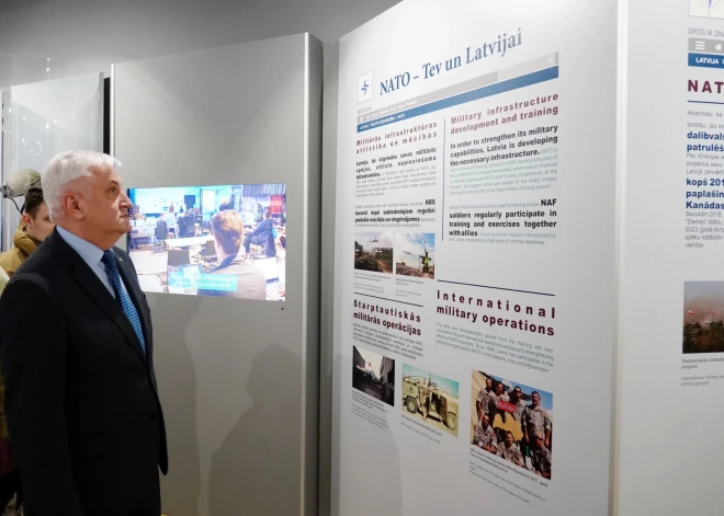 Сегодня в 8:00 на башне Святого Духа в Рижском замке в присутствии президента Эдгара Ринкевича был поднят флаг НАТО, чтобы отметить двадцатую годовщину вступления и отдать дань уважения союзным войскам в Латвии. В 7:40 в Рижском замке состоялась торжественная церемония смены почетного караула.