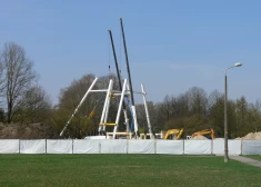 Фундамент Рижского колеса обозрения начали строить еще летом 2023 года, а в апреле 2024-го были установлены внушительные опоры.