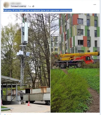 В одной из групп в соцсети Facebook женщина выложила фотографии устройств, похожих на антенны для мобильных сетей 5G, и написала: "Кабздец. И это будет у нас на крыше (дом для одиноких инвалидов)".