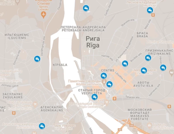 Краны с питьевой водой расположены в Зиедоньдарзсе, в домике напротив здания на бульв. Райниса, 3, на площадке перед Агенскалнским рынком, в Эбельмуйжском парке, в Дзегужкалнсе, у входа в зоопарк, на Эспланаде и в Верманском саду, в парке Зиемельблазма, на пляже Вецаки, на пересечении улиц Плудмалес и проспекта Капу, на детской площадке в Плявниеки, у статуи Роланда на Ратушной площади, на Юрмалас гатве, 133, на улице Волеру, 65, на Маза Вейзаксалас, 17, на 9-й поперечной линии Кундзиньсалас, 6, у театра Dailes.