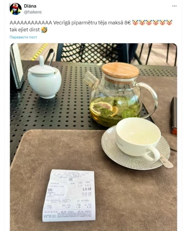 Вот только привлечет ли это к ним клиентов? Туристов - может быть, но точно не местных жителей, которые недоумевают - как может порция мятного чая стоить 8 евро. Автор поста в соцсети, разместившая фотографию чая и чек, настроена агрессивно. "Мятный чай в Старой Риге стоит 8 €. Идите в ж..у (куда подальше)".
