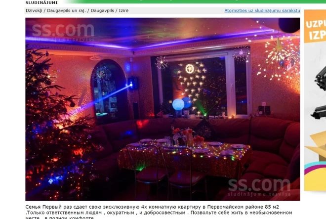 В соцсети Х один из пользователей обратил внимание на объявление о сдаче 4-комнатной квартиры в Даугавпилсе, мимо которой пройти просто невозможно! Если вы хотите оказаться на дискотеке не выходя из дома, тогда это предложение вам понравится.