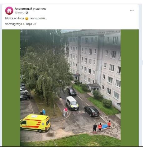 В соцсетях жители рижского района Вецмилгравис делятся информацией о трагическом происшествии - из окна многоквартирного дома выпал человек, который, судя по фотографии, скончался на месте.
