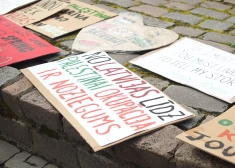 Участники марша прошли от Домской площади по улице Екаба до площади Неаткарибас. Собравшиеся несли плакаты с критикой Израиля, такие как ...