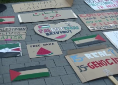 ФОТО: в Риге на Эспланаде собрались люди с флагами и плакатами на митинге в поддержку Палестины