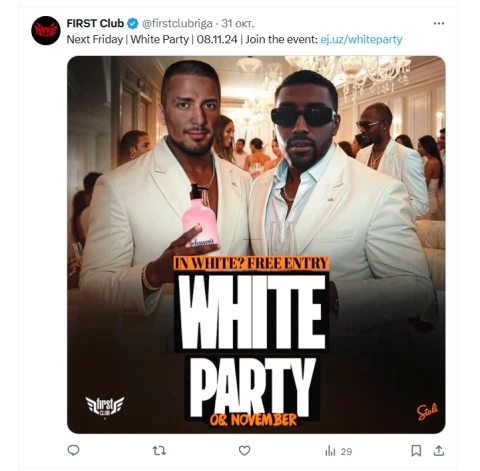 "Белая вечеринка" в стиле P. Diddy - рижский ночной клуб "хайпанул" на весьма сомнительной теме