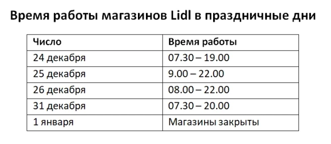 Второй год подряд Lidl дарит всему коллективу компании возможность отдохнуть и встретить наступление Нового года в кругу семьи и близких, поэтому 1 января 2025 года все магазины Lidl будут закрыты.