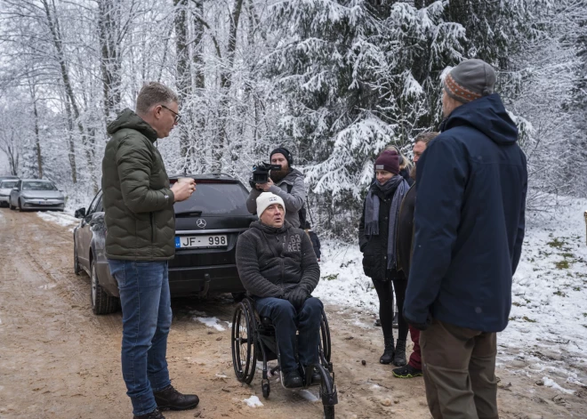 Мэр Риги Вилнис Кирсис вместе с представителями Латвийского паралимпийского комитета, предприятия Rīgas meži и яунсаргами выбрал в Юглском лесничестве главные ...