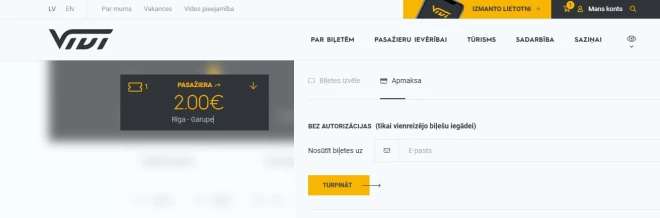 С 3 декабря пассажиры могут приобретать электронный билет на одну поездку на сайте vivi.lv без создания клиентского аккаунта и авторизации. Компания предоставляет такую возможность, чтобы сделать использование железнодорожных билетов более гибким и удобным.