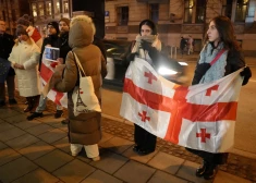 Вечером в среду в Риге напротив посольства Грузии собрались примерно 30–40 человек разных возрастов с проевропейскими взглядами, чтобы поддержать грузинский народ.