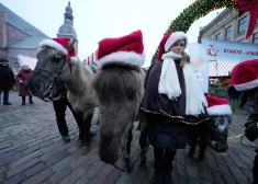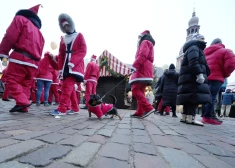 В воскресенье в Старой Риге на ежегодный благотворительный забег собрались около 300 человек в костюмах Санта-Клаусов.