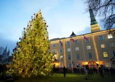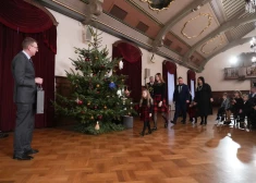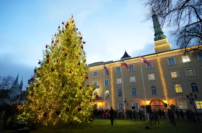 Президент Латвии Эдгар Ринкевич принял в Рижском замке 20 многодетных семей из разных краев и городов Латвии и зажег рождественскую ель на площади.