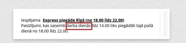 Как рассказал Jauns.lv мужчина, ему не удалось вернуть деньги за экспресс-доставку. Предложили только вариант отменить весь заказ и вернуть деньги за него. Он выбрал этот вариант. Мужчина очень возмущен своим опытом, потому что, по его мнению, компания должна была уведомить, что соблюдает перенесенные рабочие дни. "Как я мог знать, что 30 декабря у них был перенесенный рабочий день? Не все компании их соблюдают! Хорошо, государственные, но не частный сектор..."