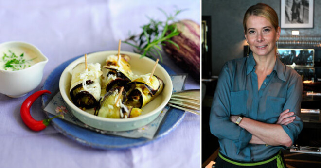 41-летняя актриса театра и кино, а также ведущая передачи «Едим дома» предлагает полакомиться закуской из баклажанов с сыром.