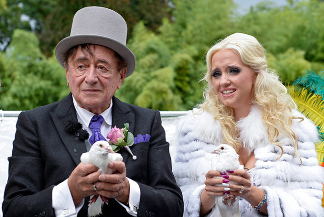 Для эксцентричного богача это уже пятый по счету официальный брак, у него есть четверо взрослых детей — два сына от первого брака, 21-летняя дочь от четвертого и один внебрачный ребенок. Глядя на невесту, которая моложе его на 57 лет, новобрачный сказал: «Надеюсь, на этот раз я нашел свою единственную». Свадебные торжества прошли в знаменитом дворце Шенбрунн, который славится тем, что являлся основной летней резиденцией австрийских императоров династии Габсбургов. Жених и невеста прибыли во дворец в карете, запряженной четверкой липпицианских лошадей. По традиции они выпустили на волю двух белых голубей. «Мы не ожидали, что полюбим друг друга. Это просто случилось. Для любви возраст не помеха», — призналась новоиспеченная супруга журналистам.