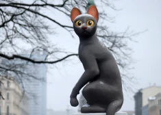 Кот из "Потока" напротив памятника Свободы (февраль 2025)