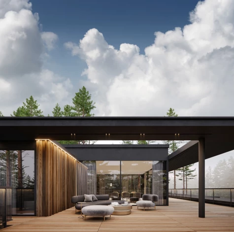Одна из уникальных особенностей проекта – гармоничное сбалансирование вертикальных и горизонтальных линий - решение, впервые успешно реализованное в архитектуре. Это создает ощущение легкости и воздушности здания. Дизайн сочетает прозрачность стеклянных фасадов и панорамную открытость с массивными горизонтальными линиями, формируя идеальные пропорции. Такая пространственная динамика, где естественный свет, природный ландшафт и инновационные материалы взаимодействуют, представляет собой новую концепцию развития жилой архитектуры. Этот подход не только стирает традиционные границы между южной и северной архитектурой, но и предлагает глобально конкурентоспособную концепцию жилой среды.