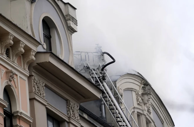 ФОТО: в центре Риги более 30 пожарных тушили крупное возгорание в жилом доме