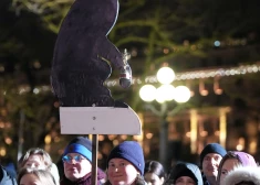 В среду вечером у памятника Свободы собрались несколько сотен человек, чтобы встретить создателей анимационного фильма «Поток».