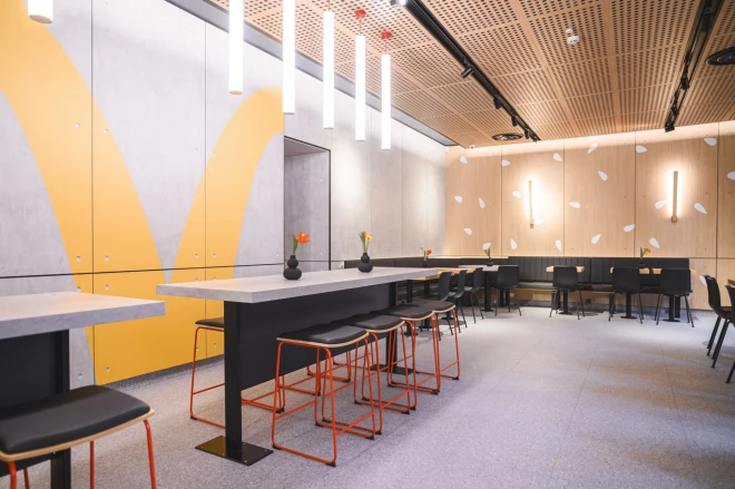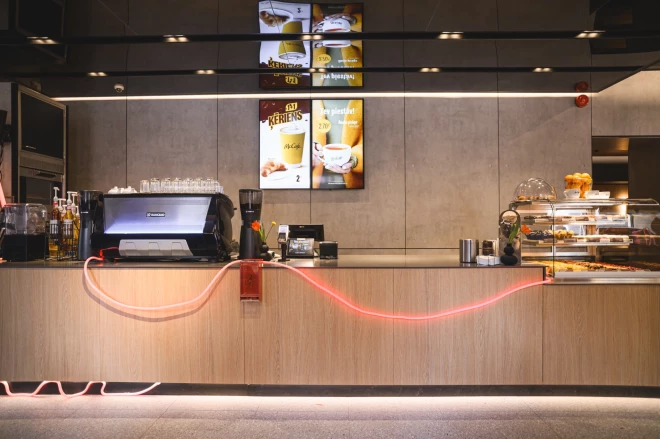 Этот ресторан также стал первым заведением McDonald's в Латвии, в котором реализована инновационная визуальная концепция RAY. Она предполагает более сдержанный и нейтральный дизайн, ориентированный на комфорт и простоту, подчеркивая ключевые ценности бренда — качество еды, уровень обслуживания и общее впечатление гостей. Это соответствует стремлению McDonald's к постоянному развитию и повышению удовлетворенности клиентов.