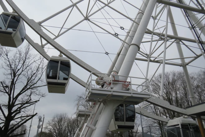 Колесо обозрения, высота которого достигает 65 метров, предлагает жителям и гостям города насладиться панорамными видами Риги в любое время года. Комфортные кабины оборудованы кондиционерами и обогревателями, а одна поездка занимает 15 минут.