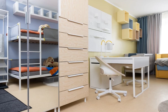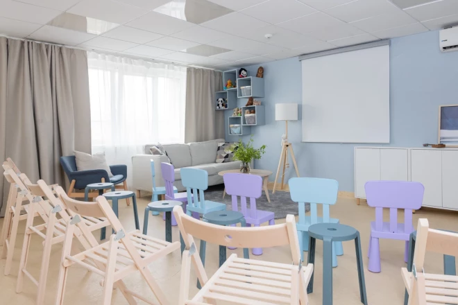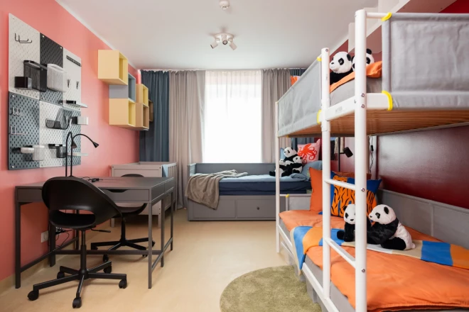 Дизайнер интерьеров, рассказывая о решениях по обустройству помещений центра, отметила, что самой сложной задачей было максимально эффективно использовать ограниченное пространство, удовлетворяя при этом самые разные потребности. "Мы сосредоточились на решениях, которые помогают поддерживать порядок, увеличивают количество мест для хранения и позволяют эффективно использовать каждый квадратный метр. Компактная, многофункциональная мебель, например, двухъярусные кровати с местами для хранения, раскладные кровати и регулируемые стулья позволили сохранить гибкость пространства. Важную роль сыграли прочная, удобно перемещаемая мебель и простые в уходе материалы. Новая планировка значительно увеличила количество спальных мест и пространство для хранения вещей, создав более комфортную и функциональную обстановку", - рассказывает дизайнер.