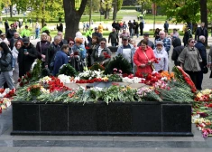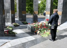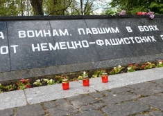9 мая люди приходят возложить цветы к мемориалу на месте захоронения павших в парке Дубровина в Даугавпилсе, вспоминая жертв Второй мировой войны.
