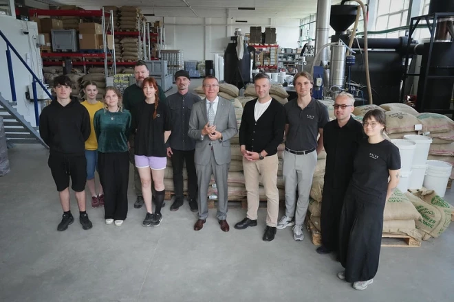 ФОТО: Ринкевич посетил кофейню Kalve Coffee и заявил, что в Латвии можно создать ценный продукт