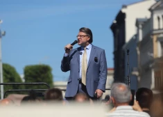 В воскресенье, 15 июня, у памятника Свободы в Риге прошел митинг, организованный лидером партии "Латвия на первом месте" (LPV) Айнаром Шлесерсом. На одном из видео видно, что политик произносит речь и на русском языке.