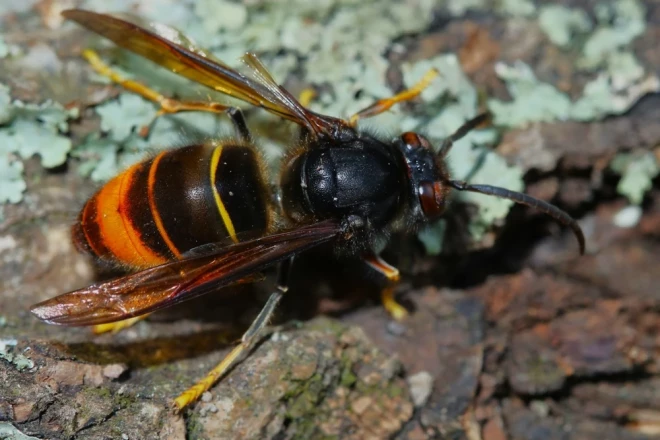 Это жалящее насекомое из Восточной Азии впервые было замечено во Франции в 2004 году. С тех пор оно распространилось еще более чем на 10 европейских стран, включая Испанию, Португалию, Бельгию, Италию, Германию и Великобританию. Азиатский шершень чуть мельче, чем его европейские собратья, имеет темную окраску и активен днем.