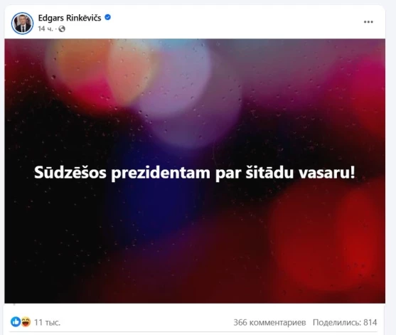 Эдгар Ринкевич поделился на своей странице в Facebook юмористическим посланием: «Буду жаловаться президенту на такое лето!»