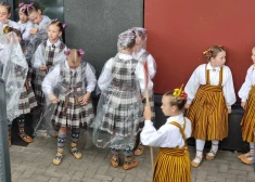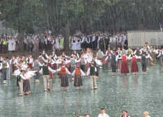 Сильный ливень застал танцоров врасплох на стадионе "Даугава" во время большого танцевального концерта.