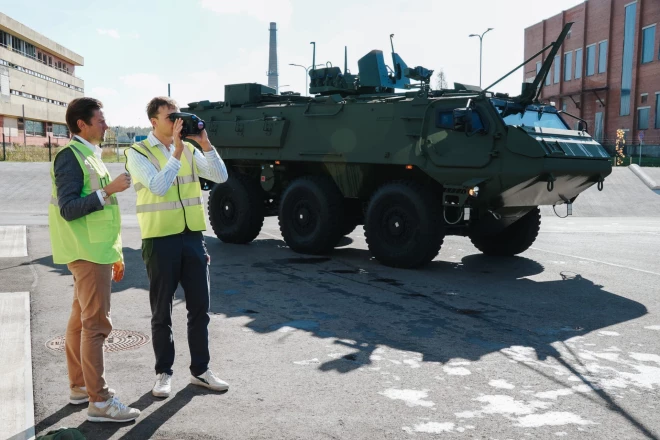 Финны в Валмиере: журналисты и инженеры приехали увидеть, как в Латвии собирают бронемашины Patria