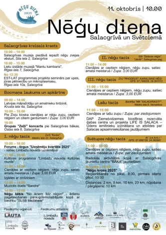 В течение дня будут работать различные творческие мастерские и развлечения для детей и взрослых. На рыночной площади в Салацгриве пройдет ярмарка, где можно будет приобрести продукцию латвийских ремесленников, фермеров и предпринимателей.