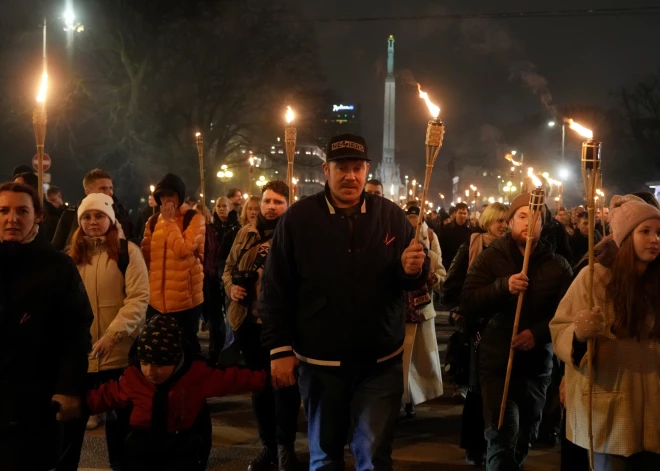 ФОТО: сотни людей вышли на факельное шествие в честь Дня Лачплесиса
