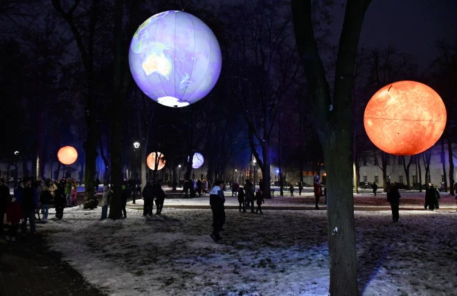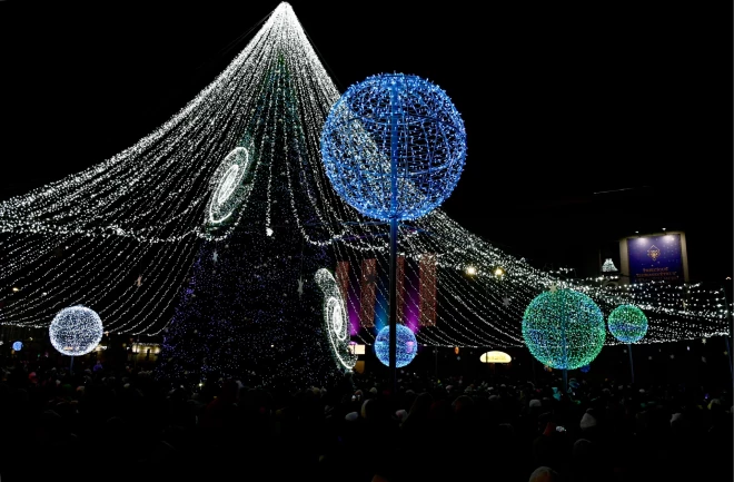 В воскресенье на площади Виенибас в Даугавпилсе зажгли главную рождественскую елку, которая в этом году превратилась в «Галактику мечты», вдохновленную философией «Маленького принца»: на ее ветвях вспыхнули «галактики» наших мечтаний, а вместе с огнями стартовал целый праздничный цикл — от Адвента до Нового года, который город предлагает пережить в атмосфере света, сказки и размышлений о самом важном.
