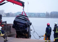 В понедельник спасателям наконец удалось поднять со дна Даугавы автомобиль, на котором женщина в четверг вечером въехала в реку.