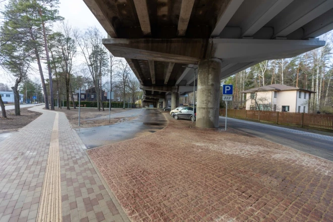 Под путепроводом с обеих сторон оборудованы новые парковки на 50 легковых автомобилей и 12 туристических автобусов. Со стороны проспекта Эдинбургас обновлены и благоустроены пешеходные дорожки, ведущие от станции Дзинтари к Дзинтарскому лесопарку и морю, а также установлено 46 велостоянок для парковки велосипедов. Со стороны улицы Миера обновлена пешеходно-велосипедная дорожка, отремонтировано дорожное покрытие и съезды. На проспекте Эдинбургас от улицы Диклю до улицы Калснавас обновлено дорожное полотно и переустроен пешеходный тротуар, в который интегрированы тактильные направляющие, помогающие слабовидящим людям безопасно передвигаться. Также устроены новые пешеходные переходы на проспекте Эдинбургас и улице Диклю. На проспекте Межапарка вдоль Дзинтарского лесопарка обновлено покрытие проезжей части и построены новые парковки на 32 автомобиля.
