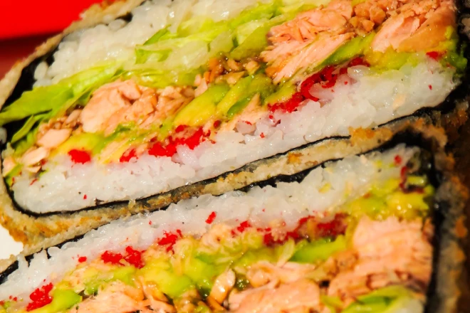 Своеобразным отходом от классики и игрой с европейскими трендами стали сушибургеры. Они представлены как полезная, но сытная альтернатива классическому бургеру - без тяжёлых и жирных соусов. Вместо хлеба используется рис с нори в панировке, а в качестве начинки - тунец, лосось, курица и другие виды протеина.