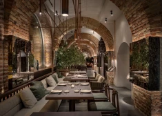 В пространстве ресторана сохранены аутентичные элементы архитектуры - кирпичная кладка, фактура стен и характер старинного здания. При этом современные дизайнерские решения аккуратно интегрированы в интерьер, создавая диалог между прошлым и настоящим.