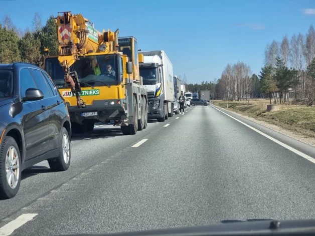 В понедельник после 11:00 из-за столкновения нескольких грузовиков было заблокировано Лиепайское шоссе недалеко от Тирели.