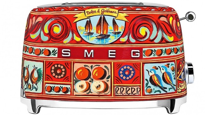 Вот уже несколько лет продолжается сотрудничество модного дома Dolce & Gabbana и известного производителя бытовой техники в ретростиле Smeg. После коллекции серьезного кухонного оборудования (плита, вытяжка и холодильник, украшенные традиционными сицилийскими узорами), очередь дошла и до малой бытовой техники. Тостеры, кофеварки, чайники, блендеры, миксеры и соковыжималки в эксклюзивном дизайне Sicily Is My Love радуют глаз жизнерадостными красками и «вкусными» сюжетами из жизни итальянского юга. Готовить еду становится намного веселее!