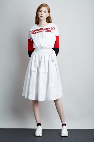 Старые телепередачи, тюремные татуировки, советские боксеры, российская молодежная культура 90-х и увлечения современных молодых людей – вот главные источники вдохновения дизайнера и основателя марки «Спутник 1985» Сергея Пахотина (1985 – год его рождения). Это простые вещи с дерзкими, цепляющими взгляд надписями типа «Я хуже тебя», «Без шансов», «Я всегда буду против» или, например, с танцующими балеринами и подписью «1991», которая отсылает к августовскому путчу 1991 года, когда Центральное телевидение показывало балет «Лебединое озеро». Правда, аудитория марки слишком молода, чтобы понимать эти символы, но лишний раз заглянуть в историю еще никому не помешало. «Мы никогда не переживали столь значимых и глобальных событий, как развал Советского Союза и уход в отставку Горбачева. Это не ностальгия, это воспоминания о важных исторических событиях, о том времени, когда мы могли или победить, или проиграть. "Спутник 1985" – это не романтическая ностальгия, это настоящий панк, злость, агрессивность и смелость!» – заявляет дизайнер.