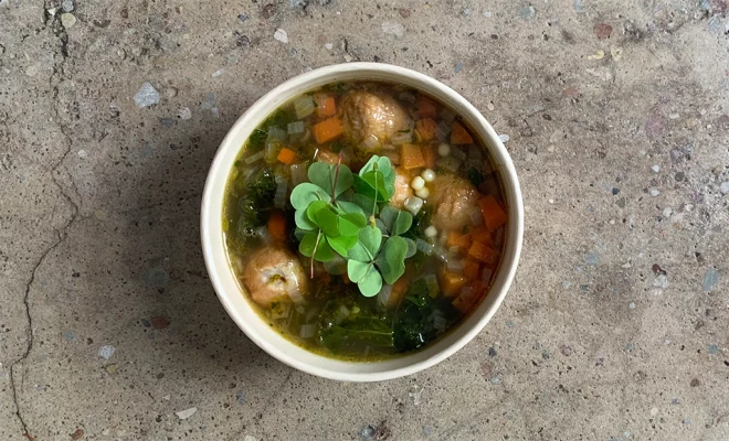 Итальянский свадебный суп с куриными фрикадельками (4 порции)