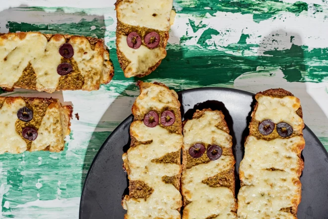 - «Мумифицируйте» бутерброды – выложите полоски сыра на хлеб так, чтобы визуально это выглядело как одежда мумии.
