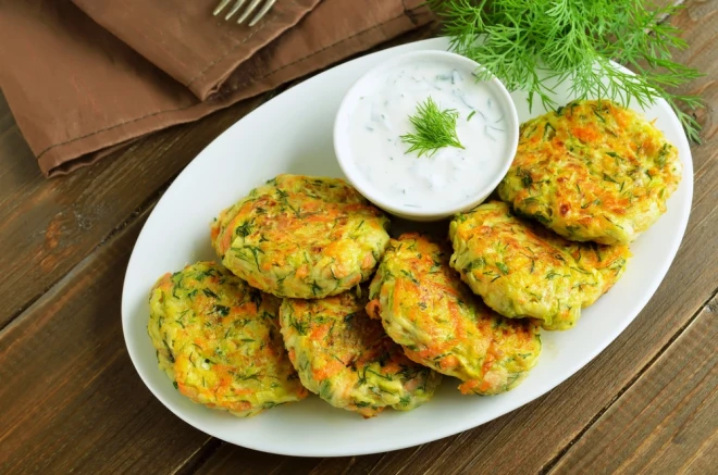 Необычные котлеты из кабачков с отварным рисом, морковью и зеленью придутся по вкусу и взрослым и детям.