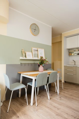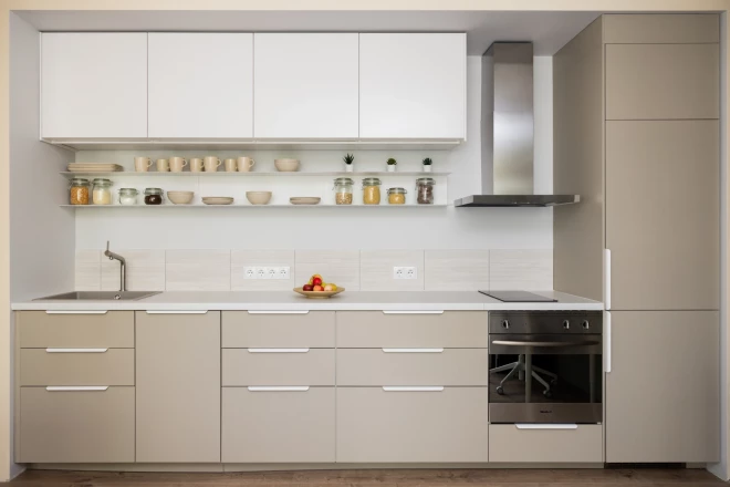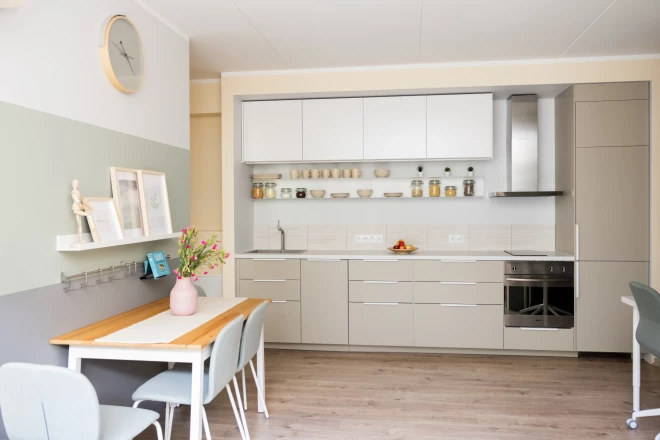 «Светлые оттенки визуально расширяют пространство, поэтому их важно использовать в небольших комнатах. Но выбирая светлые оттенки подумайте и об акцентах. Например, это может быть подвесной светильник, открытые полки, и там можно расставить сухие продукты разложив их по банкам. Вещи, которые используете часто, тоже можно поставить на открытые полки, например чашки и пиалы – они всегда нужны и могут быть декоративными элементами. Деревяная поверхность тоже может быть элементом интерьера, в случае светлого интерьера можно выбрать тёмное дерево столешницы, но стоит использовать один тон дерева, а не несколько», – говорит дизайнер IKEA Анастасия Гобрусенок.
